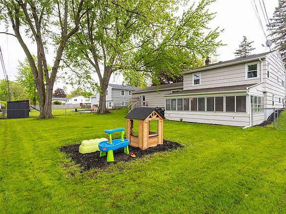 Twilight Open House 5/15 4:30-6:00; Open House 5/17 12-1:30pm! Now is your chance to scoop this beautiful home up! Mature treelined neighborhood welcomes you to this lovely spacious split-level home! Step inside to the bright living room with hardwood floors, fresh white paint and stunning bay window with seat. Spacious dining room connecting living and kitchen is the perfect center location for entertaining! Charming kitchen has stainless appliances and abundant storage space! 3 spacious bedrooms upstairs dressed in hardwoods and vinyl windows! Upstairs full bath features two sinks and easy to maintain tub! Lower den is the heart of this home, complemented with wood burning fireplace, exposed beams, & sliders to fully renovated enclosed 3 season room! Just off the den is potential 4th bedroom, office, or play room! Renovated half bath finishes off this desirable lower level! Enjoy the summer nights ahead in the 3 season room or fully fenced backyard! Don't miss the massive 2.5 car garage. BONUS!! New furnace and AC 2024. Move in ready! Must see in person, you wont want to miss this opportunity. Delayed Negotiations - Offers due Monday 5/19 @ Noon.