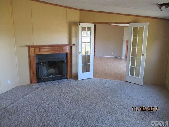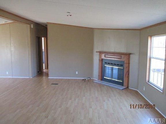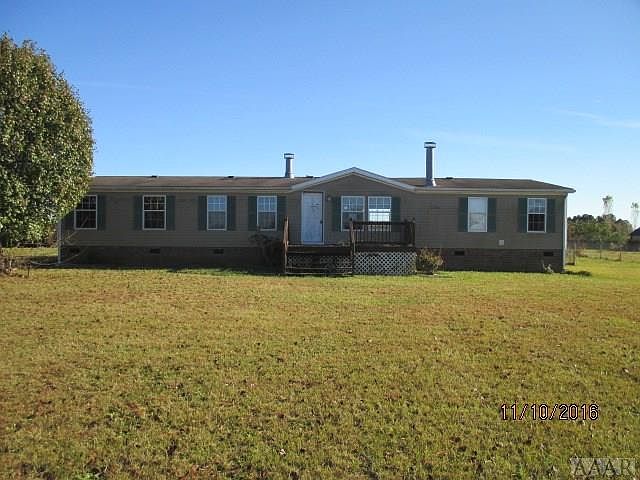 Large three bedroom, two bath double-wide on one acre in Gates County. Master bedroom wall has been opened into den area. Large master bath has walk-in closets, shower, and garden tube. Huge two car detached garage in back yard. Garage is unfinished inside, but features a spa, full bath, and possible game room. A little TLC would make this a great home.