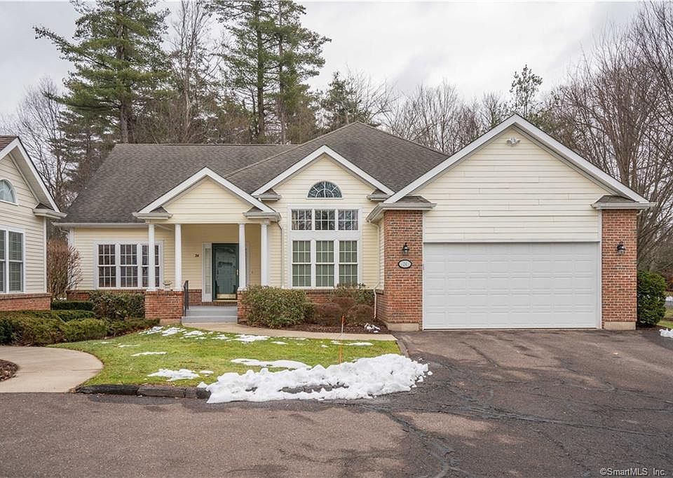 Look no further, perfection awaits. This gorgeous Cypress EL model is among the finest to be found of The Villas at The Reservoir. One floor, maintenance free living is your reward in this free-standing home with soaring ceilings, beautiful oak hardwood floors, and plentiful windows with plantation shutters and designer window treatments. The beautiful, eating space kitchen boasts granite counters, peninsula and wet bar along with custom cabinets, Viking Refrigerator and stainless appliances including gas range, beverage cooler and Miele oven. The formal dining room has an open feel and shows off a lovely Palladian window. The den/office has a closet and could be a 3rd bedroom if desired. The spacious primary suite has a spa-like master bath with granite double vanity, shower with marble tile and glass surround and the large, walk-in closet has been upgraded with an extensive closet system. The 2nd bedroom has a walk-in, neutral carpet and a full bath with white subway tile surround. There is an enormous unfinished basement with unlimited potential. Newer gas heat, 75 Gallon H20 and Central air plus a Generac, natural gas whole house generator for peace of mind in any weather. Too many upgrades to mention. All this in a fantastic location to enjoy the extensive walking trails, the MDC reservoir across the street and West Hartford Center is just 2 1/2 miles down Farmington Ave! Come see it today!