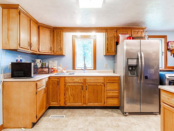Cozy, and quant is this ranch style home, which is nestled in the trees atop a hill overlooking Ridinger Lake. This beautiful home has gorgeous hard wood floors throughout, open concept with a working wood burning stove in the livingroom, and 3 bedrooms. Truly a home that allows you to live as though you are on vacation everyday, all you need is a fishing pole and a hammock!