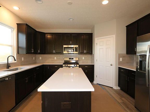 You'll love this 2-story home with 4 bedrooms, a full basement, and 2,315 square feet of living space. This home features a traditional front elevation with gray vinyl siding and raised panel shutters. Step into the foyer from the covered front porch, and immediately you'll notice the large flex space. Next is the powder bathroom and the mud room, an e-zone, and the 2-car garage entry. The stunning kitchen comes equipped with stainless steel appliances, quartz countertops, an upgraded ceramic tile backsplash, and a spacious pantry. Upstairs you'll find 3 secondary bedrooms, a hall bathroom with a double-sink vanity, a convenient laundry room, and the owner's suite with en-suite bathroom, including a large walk-in closet, a spacious shower with ceramic wall tile, and a double-sink vanity.
