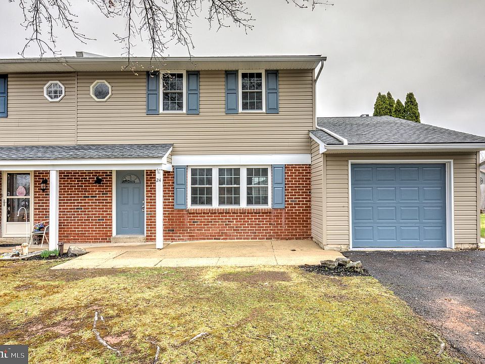 Welcome to 24 Essex Ct - an updated 3 bed/1.5 bath semi-detached home with garage in Quakertown! Located on a peaceful neighborhood street, this home has been fully remodeled and updated - all new paint, flooring, and fixtures throughout have given this home new life! The home welcomes you in via a traditional brick exterior and siding exterior with covered front entry. Once inside, you're greeted with a bright living space with brand new, attractive luxury vinyl plank flooring that continues throughout the first floor. Proceed seamlessly into the dining and kitchen area, providing great flow to the home. The large back room also allows space for a second living area/den anchored by a lovely fireplace. Enjoy easy access to the flat and usable, fully fenced backyard via a sliding glass door from this area as well. The new kitchen has been outfitted with several high-end features such as stainless steel appliances, upgraded quartz countertops, stylish white cabinetry, and colored subway tile backsplash. Back inside, main floor laundry and a charming powder room maximize convenience on the first floor. Upstairs, the second level boasts three sizable bedrooms, all fresh spaces with new, cozy carpeting. The full bathroom features a lovely tiled tub/shower combination and new vanity. Updated, ready for new owners, and easy to tour - contact us today!