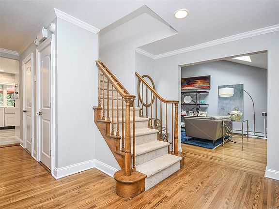 Move right into this mint 5 bedroom, 3.5 bath Expanded Ranch featuring a comfortable open floor plan. Living room/dining room with fireplace, new kitchen with stainless steel appliances & radiant heated floor, Den, 2 master bedrooms en suite (1 on first level). CAC, Mud room, attached garage, much more! This fabulous home is situated on beautiful, private landscaped property. A must see! Convenient to LIRR and shopping.
