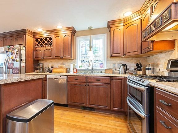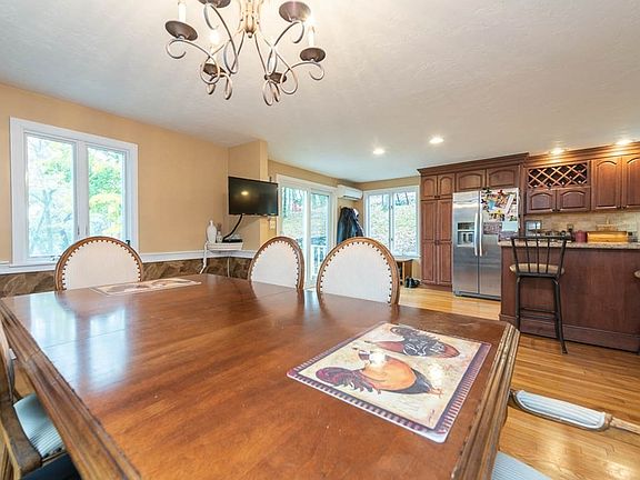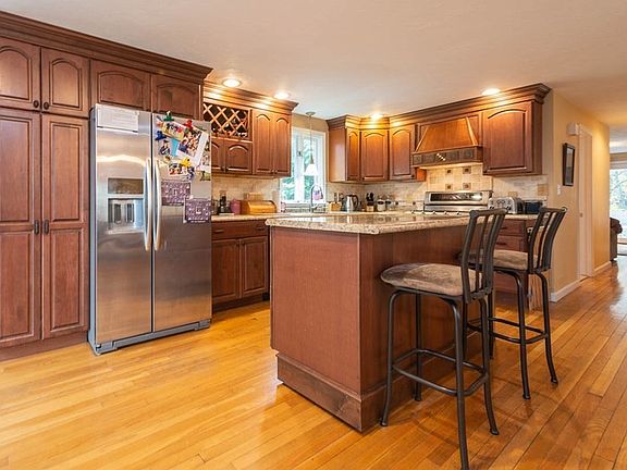Sit amongst the tree line & take in the views. A 2nd level wrap around porch w/ built in seating provides relaxation, space for entertaining, storage (below) & is accessible from multiple areas. A panoramic wall of glass highlights the partial front to back Living Room leading to a ½ BA w/ Laundry & an open concept Dining Room/Kitchen accentuated w/ an island w/ seating, floor to ceiling cabinetry & SS appliances. Unwind upstairs in the Master Suite w/ a fireplace, picture window, Bath w/ walk in shower & soaring ceilings. At the other end find 3 addtâl Bedrooms all w/ pitched ceilings and a Full Bath. Adding to the living space is a Finished Basement w/ a Bonus Room & ½ BA. A large side deck merges into the stone wall wrapped patio forming an ultimate gathering space. Desirable features here: Garage, new roof, new sliding glass door & ductless mini split AC units. Located within minutes of schools & main commuter routes. A forever home w/ a forever view!