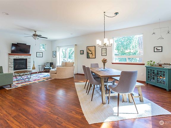 Beautiful 3 bedroom, 2.5 bath, 2126 sq ft home located on a sunny lot in Gate 1. Home features quartz counter tops, cherry laminate hard wood floors, tank less water heater, vaulted ceilings, open floor plan, ceiling fans, gas fireplace, deck off the back, walk in crawlspace, tile entry way, natural light, and an extra bonus space upstairs. The primary bath includes double sinks, quartz counter tops, tile shower, and tile floors. This home is surrounded by nature and wildlife, a green space in the back that leads to the golf course, and a community parking area right next door! Sudden Valley has many amenities including a marina, golf course, dog park, 2 seasonal pools (1 is adult only), gym access, and nearby trails.