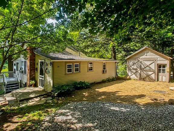 Highest & Best offers are due Monday, June 19th, by 7 PM. Discover the epitome of lakeside living in this charming 2-bed, 1-bath cottage on a double lot. With breathtaking views of Damond Pond, this post-and-beam property features cathedral ceilings, a large front sunroom, a detached garage, and a spacious Goshen Stone patio and walkway. Enjoy reading on the dock, Kayaking, canoeing, fishing, and swimming; Lake Damon also has a private sandy beach and playground within walking distance. The cottage is currently a 3 season home but can be converted into a year-round residence. House already has rough electrical for baseboard heat for the next owner to take advantage of. A new tight tank was just installed this month. Don't miss this exceptional lakefront opportunity with over 100 feet of frontage—house sites on two parcels—buyer to verify information as to use. Schedule a viewing today and embrace the beauty of lakeside living!