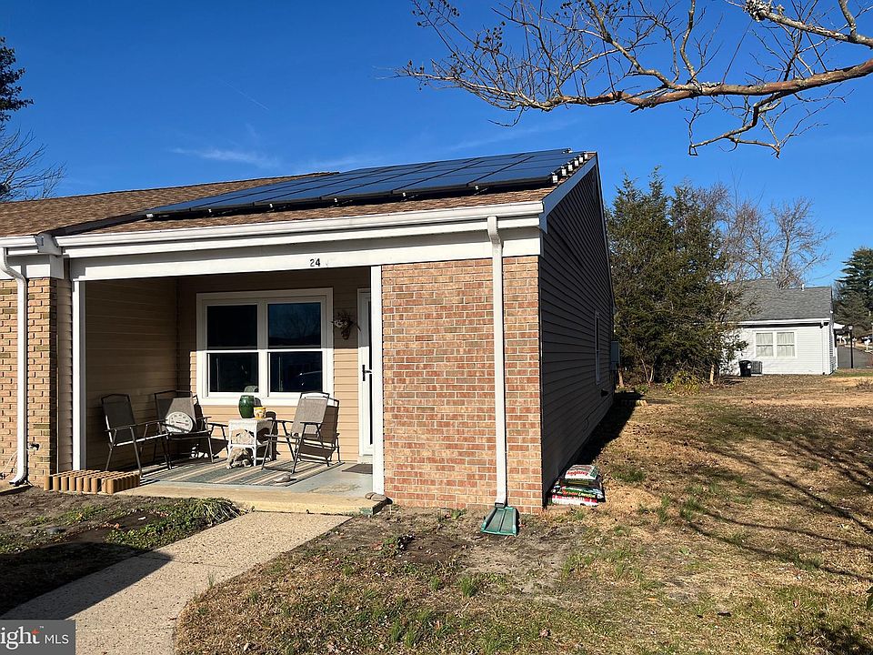 Coming Soon! Welcome to this updated and economic end-unit home located in the desirable Leisuretowne 55+ community. This bright and comfortable property features a sunny living room, galley kitchen, one bedroom, and a full bath. Enjoy the convenience of a covered front porch, rear patio, extra storage area, and a beautifully landscaped backyard. This home offers extensive recent updates, including a 2025 fully renovated bathroom with a walk-in shower, new vanity, lighting, mirrors, and cabinet; 2025 kitchen updates with new cabinets and appliances (oven/stove, dishwasher, refrigerator); 2025 updated closet doors; 2025 new washing machine and new attic fan; and a 2024 new dryer. Additional modern upgrades include newer front and storm doors, newer front and side windows, newer luxury vinyl plank flooring, newer baseboard heating in the living room, added insulation in the front, side walls, and attic, plus pull-down attic steps. A 2021 roof and solar panels (SunRun, $53.29/month) further contribute to efficiency and cost savings. The home includes existing appliances and a window A/C unit. Photos coming soon! Residents of Leisuretowne enjoy access to more than 70 activities, including two pools, two clubhouses, and multiple lakes, offering a vibrant and active lifestyle. Sale Contigent upon Seller securing suitable housing.