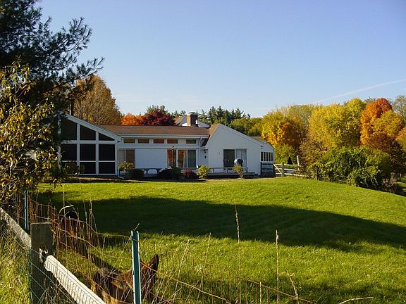 5000 sq. ft. architecturally signficant, California contemporary, completely renovated in 2005. Open floor plan with 18 foot vaulted ceilings, in-law apartment/ office with seperate entrance, walls of glass, panoramic views from every room, 2 full kitchens front and pool-side (sub-zero, viking, bosch, black granite), 5 fireplaces (2 open, 3 gas), large master bedroom suite with fireplace, 4 other bedrooms, sunken living room, open-air atrium, second floor office, 5 acre level lot, new septic, excellent well water, over 100 trees, apple orchard, surrounded by 25 acres open land, river, streams and pond. Historic 2-floor barn with horse stall, electric and water. $10,000 taxes, $5,000 maintenance. Neighborhood Description Open lands and big sky, but 2 miles from upscale town center and award winning schools. Great neighbors with 3-5 acre lots and 25 acres open lands. Walk to Farmington River and great views of Talcott Mountain. 2 hours to Manhattan and 1.5 to Boston & Rhode Island beaches....wait, not sure I want to move!