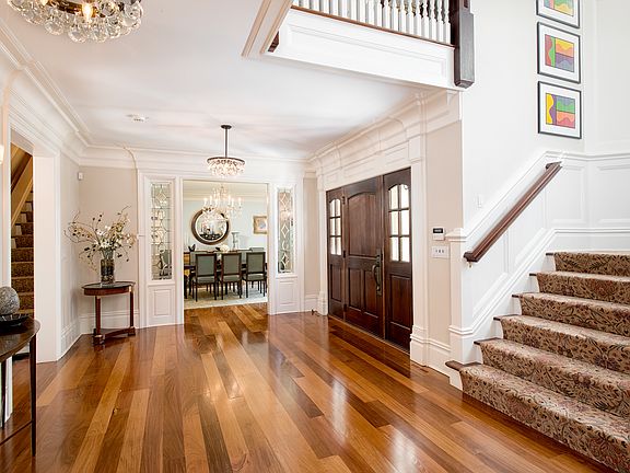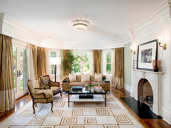 Sophisticated elegance defines this stunning six bedroom, six bath shore colonial designed by award-winning Sound Beach Partners amid a nearly one-half beautifully landscaped acre in the heart of Riverside. Exquisitely detailed millwork, Brazilian teak flooring, coffered ceilings and French doors to outdoor living spaces highlight the comfortably scaled 7,981 square foot interior. The gracious living room with marble fireplace and broad bay recess and cherry paneled, coffered-ceiling library open to an inviting covered porch. A dramatic, two-story vaulted family room with marble fireplace, clerestory window and built-ins opens to a partially covered stone terrace and lovely, fenced rear yard. A grand formal dining room connects to a spectacular, coffered-ceiling chefs kitchen with 9-foot marble center island, sunny casual dining area, a walk-in pantry and superior Wolf, Miele, and SubZero appliances. An adjoining large butlers pantry is equipped with a wine cooler and Miele dishwasher. Formal/informal powder rooms serve the main floor. Second floor family quarters, with a corridor balcony overlooking the family room, includes five generous bedrooms with en suite marble baths and spacious closets, plus a laundry room. Luxurious master suite, with expansive windows lining a broad bay recess features built-in media/accessory cabinetry, spacious walk-in custom closet and striking, barrel ceiling marble bath with double sink vanity, BainUltra Air Jet tub and shower. Third floor play area room, study area with computer stations and half bath. Lower level media/recreation and exercise rooms, temperature-controlled wine cellar, one bedroom and full bath. Elevator; sprinkler system; generator, heated three-car garage.