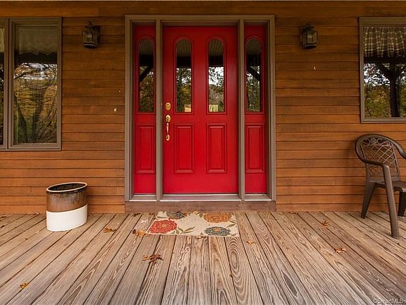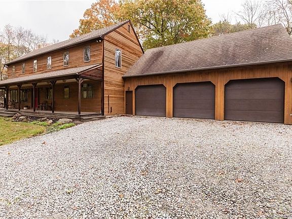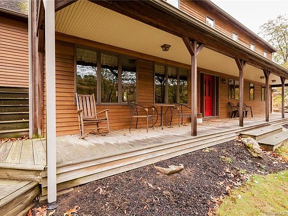 Exposed beams and beautiful wood ceilings in the vaulted dining room. An open floor plan in the center of the house with an abundance of windows and skylights. Sit on the large covered front porch in this private setting on almost 5 and a half acres. Master bedroom and bath on the first floor. Highly functional flow from the 3 car garage enter the large laundry/mud room. The kitchen is bright and welcoming with a large eat in island open to the dining room and living room. 3 big bedrooms upstairs and the ability to expand with space above the garage measuring at 24Gx 35G. Maybe an Au Pair space or in-law space? A nice size finished basement room off the kitchen.