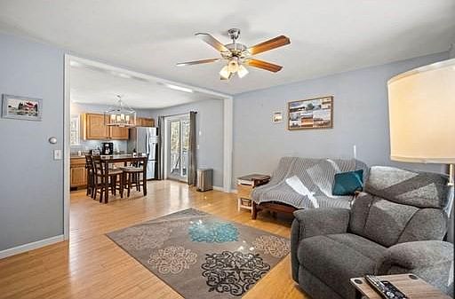 Welcome home! This adorable 2 bed, 2 bath, 1,176 square foot ranch is ready for its next owner! Step inside the front door and be greeted by an open living room and kitchen perfect for entertaining. You'll find a slider off the kitchen with access to a deck the entire length of the house! Down the hall from the kitchen and living room you'll find a full guest bathroom with washer/dryer hook ups. A guest bedroom is across the hall from guest bathroom and the master bedroom with master bathroom and walk-in closet are at the end of the hall. The master bedroom also has exterior access to the deck. Many updates have been done on this young ranch including upgraded bamboo floors, master bathroom, kitchen countertop and sink, and dishwasher. Let your imagination run wild with the unfinished walkout basement. The best part of the house? Your gorgeous views of Hamilton Reservoir and deeded beach rights near by! Showings begin at OH Sat, February 5th & offer deadline Mon, February 7th at 12pm.