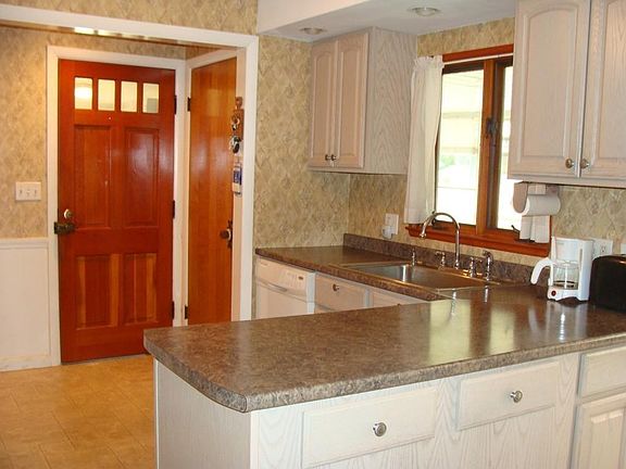 L-Shaped ranch with remodeled kitchen (2006), open Dining Room with bay window, Living Room with fireplace and bay window, Master Bedroom with half bath, replacement windows, newer roof, partially finished basement, natural gas heating, Mud Room and Sun Room, newly fenced in rear yard has beautiful mature trees for shade, out building, side load 2 car garage, sprinkler system for front lawn. Don't Miss Seeing This One!