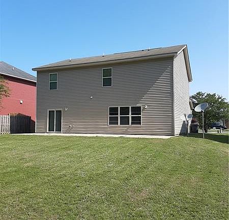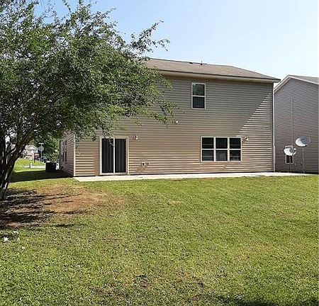 HOMESITE IN REAR CORNER OF COMMUNITY BACKED UP TO THE WOODS AT THE MOUTH OF A CUL DE SAC EQUALS VERY LITTLE TRAFFIC. ONLY SEE THE 8 OR 10 NEIGHBORS CLOSEST TO YOU IN THE REAR OF THE COMMUNITY. HOMESITE BACKED UP TO THE WOODS FOR EXTRA PRIVACY. CONCRETE REAR PATIO STRETCHING FROM ONE END OF THE HOME ALL THE WAY TO THE OTHER END OF HOME FOR ENTERTAINING AND FAMILY COOKOUTS ETC. BRAND-NEW STAINLESS-STEEL KITCHEN APPLIANCES. EVERY INCH INTERIOR PAINTED WITH HIGH QUALITY BEHR PREMIUM PAINT. NEW 2 INCH FAUX WOOD BLINDS THROUGH OUT HOME. BRAND NEW CARPET. HOME IS VERY FRESH AND CLEAN WITH NEW TOILET SEATS IN PACKAGE READY TO ISTALL AND ALL LITTLE KNICK KNACK REPAIRS ALREADY COMPLETED. TWO OF THE THREE LARGE BEDROOMS UPSTAIR HAVE LARGE WALK IN CLOSETS WITH LIGHTING AND 4TH BEDROOM HAS AN EXTRA WIDE CLOSET NON-WALK IN. ALL BEDROOMS HAVE CEILING FANS AS DOES FAMILY ROOM.CONTRACTORS EQUIPMENT AND SUPPLIES WILL BE REMOVED FROM GARAGE INTERIOR IN A FEW DAYS 2443 SF, 4 BR/2.5 BA, 2 CAR GARAGE FRONT OF HOME FIRST FLOOR BRICK WITH CENTER GABLE BRICKED ALL THE WAY TO THE ROOF FOR THAT HIGH QUALITY LOOK. ENERGY STAR RATED HOME AT TIME OF BUILD COMPLETON. GRAND TWO STORY FOYER WITH FORMAL LIVING ROOM AND FORMAL DINING ROOM WITH COLUMNS, HUGE FAMILY ROOM WITH OPEN KITCHEN DESIGN, BREAKFAST BAR, EXCEPTIONAL VIEW OUT SLIDING GLAS DOOR TO WOODED AREA IN REAR. HUGE MASTER BR WITH LARGE MASTER BATH WITH SEPARATE GARDEN TUB WITH LARGE MASTER CLOSET