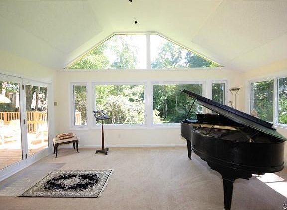 South Wilton cul de sac - 2600 SF Ranch - 3 Bedrooms, 3 Full baths. Living room w/fireplace and vaulted ceiling great room w/ walls of windows & glass door open to a huge deck. The kitchen has marble counters & is adjacent to the family room, office, and formal dining room. The master bedroom is very large & has its own bath + sliders to the deck. There are two additional bedrooms and two more baths. Recent improvements include windows,carpeting & paint inside & out. 2 car garage.This is an extremely versatile house with open light filled spaces and is a wonderful opportunity to have a large home on this prime South Wilton road w/ specimen plantings that enhance its privacy & character.