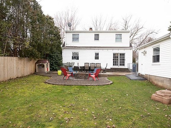 Wonderful 3 Bedroom 2 FULL BATH CAPE/COLONIAL loaded with Updates! Large Living Room w/ gleaming oak floors and BAY WINDOW! Oak kitchen w/NEW counters ! Garden windows, Stainless Appliance Package & Tile Floors & Backsplash! FORMAL DINING ROOM w/ gorgeous wood floors and sliding door that opens to the FENCED in YARD w/ HUGE PATIO, firepit & shed! 1st Floor Bedroom & Bath! OAK STAIRCASE leads to 2 bedrooms and 2nd FULL NEW bath up w/ glass enclosed shower! Large master bedroom w/ walk in closet & oak floors ! Thermopane Windows! Detached Garage w/ storage area! FULL BASEMENT! New Rheem HI E Furnace & CENTRAL AIR (2017)! Freshly painted throughout!