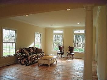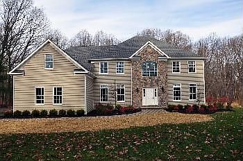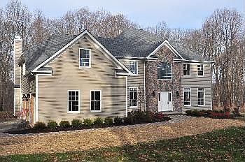 New Custom Home, part stone facade, level, private 1.9 acre home site. Spacious rooms, gourmet granite Kitchen w/island, top of the line appliances. Fireplace in Family Room, with vaulted ceiling. Side by side Living & Dining Rooms ideal for entertaining. Library level one. Hardwood floors. Lovely Master Bedroom with 2 large walk-in closets & sumptuous Bath. Princess Suite with Full Bath. Large Play Room/Recreation Room on Level 2. Full Basement. 3 car garage (no lolly columns). Natural gas heat. Paver walkway. Bordered by trees.