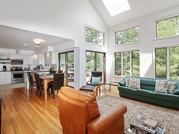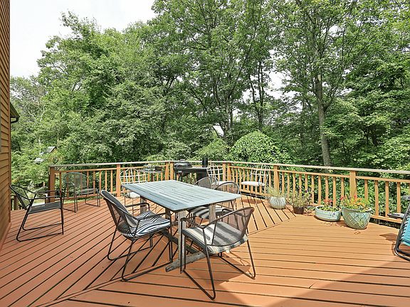 Private Garrison Contemporary perfectly nestled into the woods. Open floor plan offers dramatic two story living room with fireplace walls of glass and direct flow to deck, spacious kitchen and dining room. Escape to the cozy family room complete with second fireplace. Second floor Master suite with spa tub and views of wooded surrounding, two additional spacious bedrooms share a guest bath. Large sunny bonus room has been used as a studio, play room and currently set up as guest room. Walking distance to trails, short ten minute drive to Metro North Train.