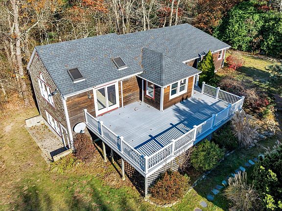 Nestled in the desirable community of Hatchville, this 3-bedroom, 3-bathroom ranch is surrounded by nature and offers the perfect blend of tranquility and convenience. Enjoy the scenic conservation trails and local farm stands just minutes away, with easy access to all the amenities Cape Cod has to offer. Set on over an acre of land, this property provides ample room for family gatherings, outdoor activities, and gardening. The expansive front deck is perfect for hosting friends or simply unwinding while soaking in the serene surroundings. The master bedroom boasts skylights and cathedral ceilings, creating a bright and airy retreat, with direct access to the deck for your morning coffee. The lower level features a private bedroom with its own bathroom, perfect for guests or as an in-law suite. Enjoy peace of mind with a new roof installed just 4 years ago and a new water heater within the last year.