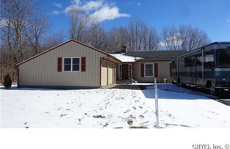 Country, but so close in! A quick commute from Syracuse, just off the Route 81 Central Square exit! This 3 Bedroom, 2 Full Bath Ranch features an open layout, perfect for entertaining. Large Living Room with beautiful Hardwood floors, and Woodburning Fireplace. Open Kitchen/ Dining Room, with remodeled Kitchen, featuring Granite countertops & Stainless Appliances. Enjoy 4 Seasons of beauty in the large, private, wooded lot. Lovely Deck for all your Summertime entertaining! Oversized 2.5 car garage can accommodate all your summer/winter toys, with easy access/staircase to the basement.