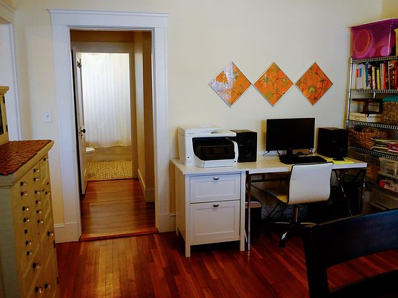 Spacious 2 bed, 1 bath, first floor unit with open dining room and living room space. Kitchen features lot of cabinets and storage. Off street parking, and hookups for washer. Gas dryer is staying, hookup for washing machine. Unit was de-leaded last year. Landlord pays water, tenant pays all other metered utilities.
