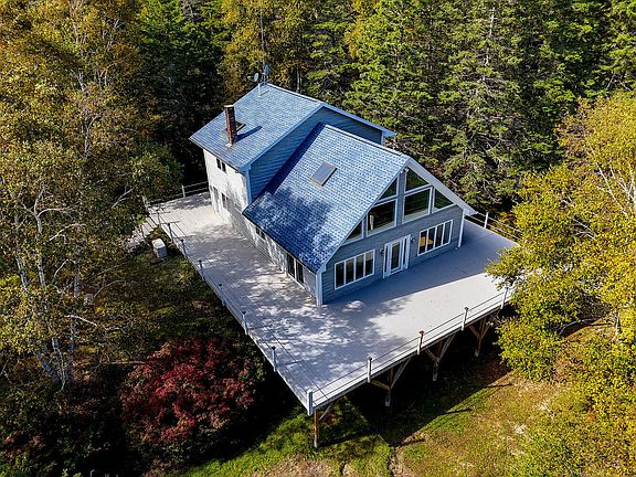 Enjoy the best of Maine living in this Contemporary home, tucked among the trees on desirable Goose Cove Road in Deer Isle. Designed to capture southern light with high ceilings and an open layout, this home offers a peaceful retreat in a wooded setting. Construction began in 1996 and was completed in 2000, with three spacious bedrooms and three full baths spread across three levels—offering a comfortable and functional space for year-round or seasonal living.