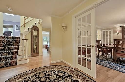 Recently updated, this home has a bright and spacious eat-in kitchen with granite, stainless, and standing height center island. The open plan also includes a step down family room with fireplace and big window views to the back yard. Hardwood throughout much of first floor. Formal dining room with French doors and wainscoting. Living room fireplace w/ marble surround, hearth, & glass doors. Finished lower level offers media room, game room, and workshop. ***BOSE speaker system plus speakers to stay*** Outside, this property features a private, beautifully maintained yard with deck, patio, fire pit and exterior lighting. The rock and flower gardens includes a waterfall and miniature train that meanders throughout. It runs the length of the garden and returns to circle the lower level of the home. With many efficiencies, this is an easy, relaxing home ready to be enjoyed!