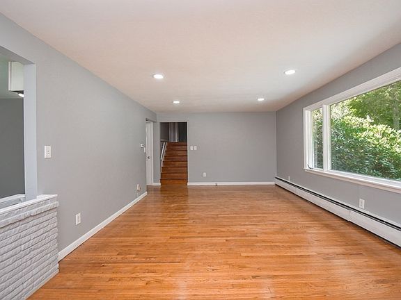 PROPERTY IS NOT FOR RENT! BE CAREFUL OF SCAMMERS! Check out this freshly remodeled home nestled on a charming street of Wilbraham! BRAND NEW KITCHEN equipped with white cabinetry, granite countertops, modern fixtures, tile flooring, a dining space and stainless steel appliances. Head into the large living room space lined with refinished hardwood flooring & recessed lighting that also features an accent wall with fireplace and custom built-in's. Three bedrooms located on raised level with large closets. Fully remodeled bathroom with new vanity, tile, and fixtures. Additional basement space available that walks out to the private, cleared yard that abuts wooded areas. CITY WATER & SEWER!