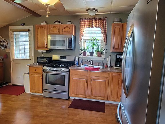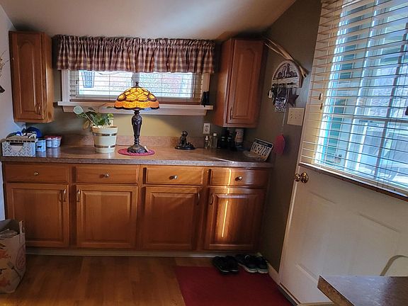 House was gutted to studs and upgraded in 2008 New walls, ceilings, oil furnace, total new wiring, 3 types of heat in house, new kitchen & half bath, great porch in rear, large beautiful level lot with stream @ rear of property. Also house wired for generator. Large detached garage with pellet stove & it has electric.
