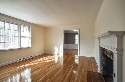 Easy sun filled one floor living with gleaming hardwoods and open floor plan. This is a great home with flexible floor plan which offers plenty of space for all. The kitchen is charming with separate pantry and prep area, plus lots of storage and granite island. There is an open study/sitting room loaded with bookcases, a cozy fireplaced study, huge fireplaced living room and 3 spacious bedrooms. The lower level family room provides plenty of finished space for play, media center and/or exercise room. This charming home is set well back in a popular cul de sac neighborhood. Very convenient location within walking distance to town, close to bucolic Farm Pond and convenient access to trails. This is a perfect home for a variety of lifestyles. The grounds are open and usable for gardening and play. Priced to sell and move in ready, this is a great opportunity to live in a fabulous community, in a great neighborhood with #1 rated school system!!