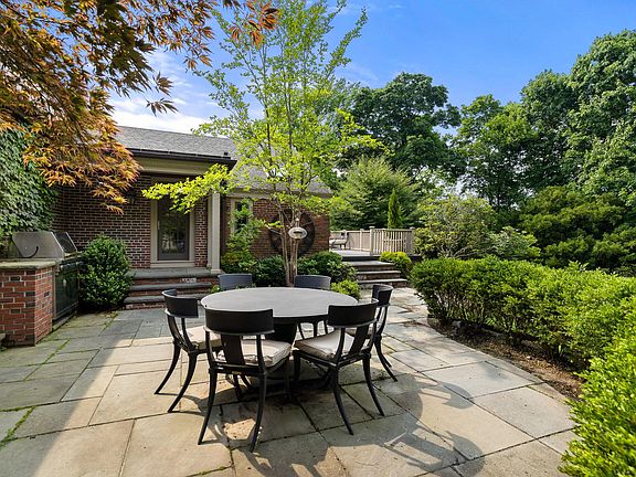 Nestled into the hillside at the end of a private road, this 6-bedroom contemporary home provides the perfect setting for quiet, uninterrupted living. Consistent renovations have taken place within the past 10 years. Sited on over an acre of sweeping lush lawns and gardens, this home is perfect for entertaining large gatherings. Beautifully appointed and sun-filled throughout, most rooms on the main level connect to multiple terraces, ideal for outdoor seasonal entertaining. Special amenities include a home theater, wine cellar, gym, and an au-pair suite with separate entrance and patio.