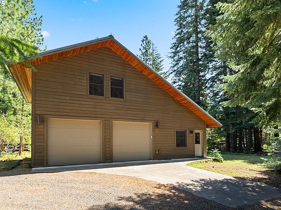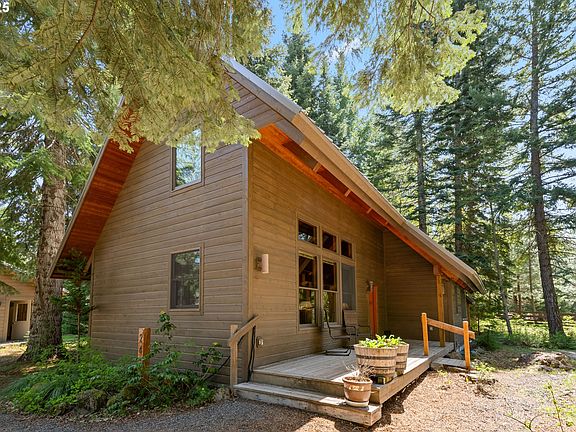 Escape to Your Own Mountain Retreat! Tucked away on 1.06 serene, tree-lined acres, this custom-built modern cabin blends timeless cabin charm with thoughtful contemporary design. A peaceful irrigation ditch meanders along the back of the property, adding a natural, soothing soundtrack to your private outdoor escape. Inside, you'll find 2 bedrooms (one of which is a loft space) and 2 full bathrooms, all crafted with warmth and personality. The open-concept layout brings together the kitchen, dining, and living areas beneath soaring tongue-and-groove ceilings, exposed wood beams, and real hardwood floors—creating that perfect modern-rustic aesthetic. Whether you're hosting a gathering or unwinding for a quiet weekend, this space is equal parts inviting and functional. The oversized two-car garage with workshop includes a fully finished bedroom and bathroom above—ideal for guests, a home office, or potential ADU conversion. Located just 30 minutes from White Salmon, Washington, and Hood River, Oregon, and only moments from year-round recreation and the Gifford Pinchot National Forest, this mountain getaway offers peaceful forest views, thoughtful design, and adventure right at your doorstep.