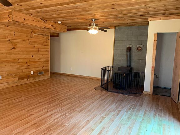 Log cabin home with tons of character in a country setting. The main floor has an open floor plan with stainless appliances in the kitchen, tons of cabinet/counter space, breakfast bar, propane stove, access to a huge covered deck and a small bonus room (could be bedroom or office). Upstairs has a large bedroom with skylights as well as a full bath with double vanities, skylights & shower with dual shower heads. The basement has a cozy family room with a wood stove (conveniently fenced off for safety), another potential bedroom, laundry nook, bath & access to lower patio. Enjoy spending time on the upper deck listening to the nearby creeks while the kids entertain themselves on the play set. There is a tiny home on the property that is unfinished which could be used for storage, studio or hobby room. Bring your pets! Chicken coop on property as well! Call us for more information This property will not last! (4 people max due to septic).