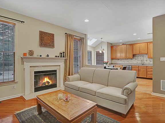 Pristine, move-in ready townhome w beautiful custom moldings, updated KIT, open concept LR/DR, fireplace, fin bsmnt, fenced yard & more in sought after Patriot Hill! Neutral tones, walls of wndws, wood flrs & plush carpeting highlight this popular floor plan! Spacious LR illuminated by pic wndws opens to an equally lrg DR for easy entertaining. Whip up meals in a stylish KIT adorned w SS applncs, stone tile backsplash & plenty of wood cabinets. A skylit breakfast area offers access to a fenced yard w patio & lawn. Unwind by the fireplace flanked by wndws in the lovely fam rm. Lrg mstr suite w peaked ceiling, WIC closet, & lux bth w jetted tub, shwr stall & 2 sink vanity. 2 more bdrms & full bth. Create a fun rec rm, home office or whatever you need in fin bsmnt w full bth.