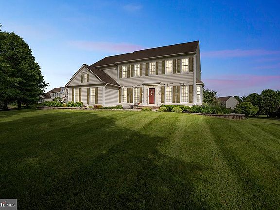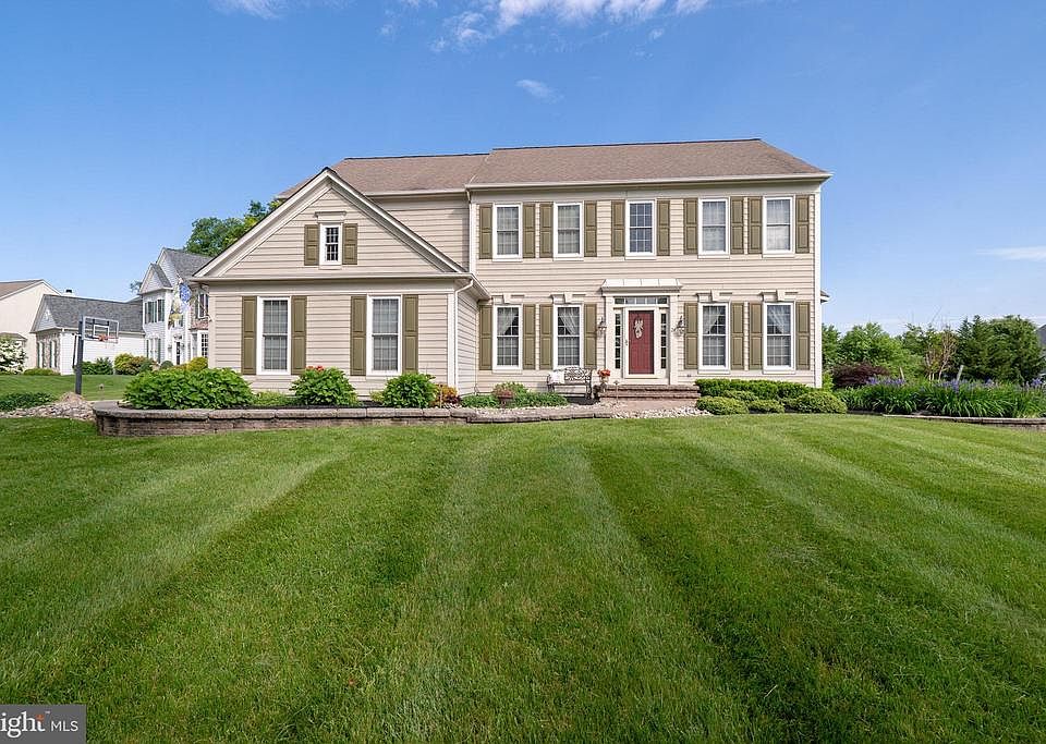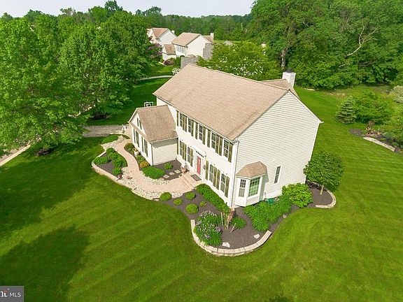 Spacious Ashville model Center Hall Colonial on huge, meticulously landscaped corner lot, in one of Newtown's most desirable neighborhoods!; enter this home from a gently winding paver walkway into a 2 story entry foyer flanked by a formal living room with bay window and wall to wall carpeting and a formal dining room with hardwood floors and custom dentil molding and shadow box; off of the entry is the powder room and first floor office with hardwood flooring, crown, chair, and shadow box molding; a 2 story family room with hardwood floors features a gas fireplace with marble surround; the huge kitchen with breakfast area has a center island, granite countertops, 42" cabinets, gas cooking, ceramic tile flooring and backsplash, large walk in pantry, atrium door to the rear deck that overlooks one of the largest lots in the development; the laundry room/mudroom is off of the kitchen and offers interior access to the 2 car garage; the second floor features a bridge hallway overlooking the family room and entry foyer; the master bedroom features a tray ceiling, walk in closet and a master bath with stall shower and soaking tub; a hall bathroom features ceramic tile and double sinks; three additional bedrooms with wall to wall carpet and double closets complete this level; a finished daylight basement provides a great place to relax, entertain, or exercise, a large storage area is also provided; 9' ceilings on first floor...