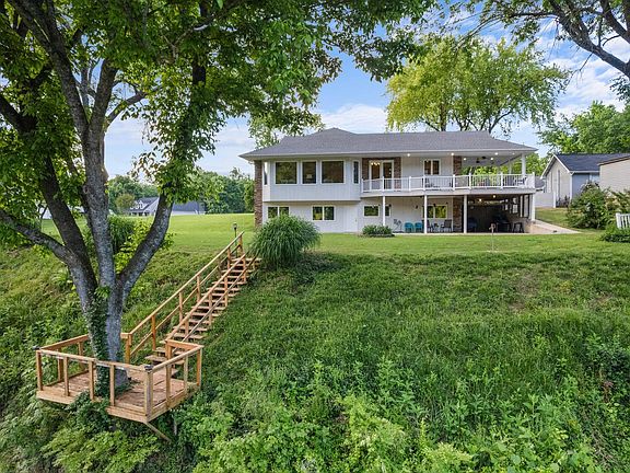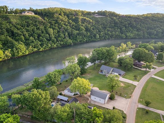 Stunning Riverfront Home in Cotter, Arkansas: Experience luxury living in this beautifully furnished 4-bedroom, 3.5-bath home along the picturesque White River, just a short walk from restaurants and a tap room. Designed for accessibility & low maintenance, the open floor plan features breathtaking river views & cathedral ceilings.The main floor master suite offers a spacious walk-in closet, a luxurious bath with a double vanity, a custom no-step handicap shower, an air jetted tub, and a cozy fireplace.The custom kitchen includes elegant cabinetry, a large island, and a walk-in pantry, with a separate prep kitchen area overlooking the river. The lower level is perfect for entertaining, featuring 3 additional bedrooms, a theater room w Bose speakers, and a separate kitchen with two full baths. A chair lift provides easy access to this area. With a 32x44’ garage for RV storage & ample parking, plus fantastic covered outdoor spaces for relaxation & entertaining, this home is a rare find.