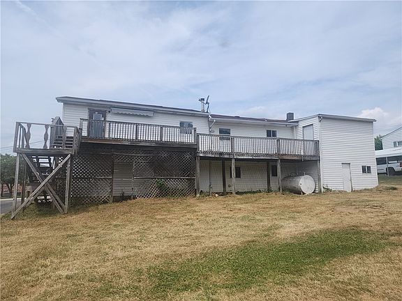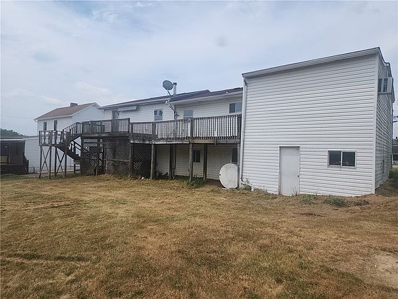 Triplex includes one 1-bed and two 2-bed apartments with approx 3300 sq/ft in living space. Currently needs repair throughout. 1 bed is on the first floor and the 2 beds are both on the upper floor. The first floor also has a large 2-car garage, not counted in the sq/ft, for tenant parking, storage, or renting. There are large decks included with both upper apartments. Please do not use the rear deck. Level lot and approx 5 miles to US-22. Separate utilities and last lived in approx 2-3 years ago. Live in and rent the additional two units. Investor and handyman special. CASH AS-IS