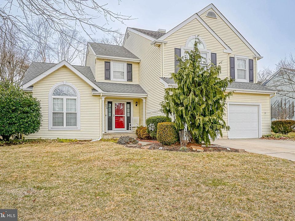 Perfect opportunity to own this beautiful home in the desirable neighborhood of Bobbys Run! This property sits on a well maintained, 1/4 acre lot and is just minutes away from the elementary school, Village Green Park, and Rt 38 and 295 making traveling/commuting convenient. The paver patio will lead you up to the front door and upon entry you will be greeted by the grand, two story foyer. The eat-in kitchen is equipped with deluxe cherry cabinets, a kitchen island, and overlooks the family room. The living/dining room is off the kitchen and includes hardwood floors and a cathedral ceiling. The large primary bedroom has a cathedral ceiling, walk in closet and en suite bathroom. Three more bedrooms and a full bathroom complete the upper level. Full, finished basement perfect for a gaming area or exercise room. Massive two car garage perfect for extra storage. Sliding glass doors off the family room will lead you to your generously sized, fenced in backyard featuring a stamped concrete patio. Schedule your tour today!