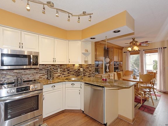 The living is easy in this Move in ready North Colonie Townhouse located in the desirable "maintenance free" Spring Meadows neighborhood. 2 bedrooms, spacious loft, 2.5 baths, 2 CAR GARAGE & 1st floor small office are just the beginning for this nicely maintained townhouse with lots of updates. Granite Kitchen & all 3 baths have been updated. Master Bath boasts a garden tub, stand up shower, sky lights & sauna. New Stainless Steel refrigerator, dishwasher, microwave & range with oven (2020). New Brazilian Cherry LVP Flooring on 1st floor 2019. Vaulted ceilings in family room with sky lights. HOA takes care of the lawn, snow removal, trash & insurance. See virtual tour for more photos.