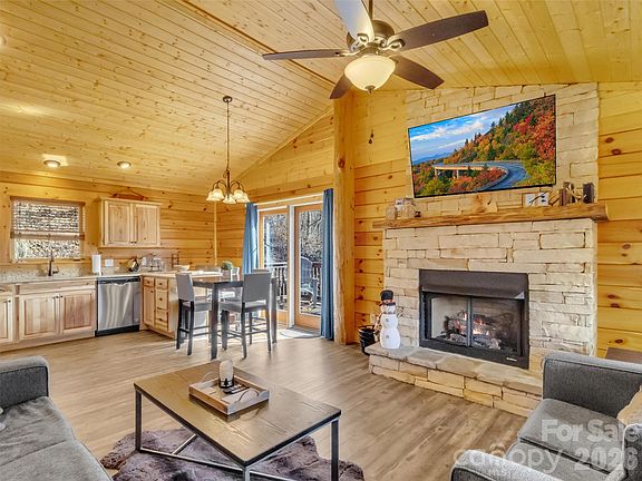 Almost-new, turnkey cabin with breathtaking long-range views. This 2-bedroom, 2-bath retreat features a custom fireplace, a modern kitchen, and thoughtfully designed living spaces throughout. Enjoy the scenery from both the front and side decks, perfect for relaxing or entertaining. Ideally located near Cataloochee Ski Area, Harrah’s Cherokee Casino, Maggie Valley, and Waynesville, with an easy drive to Asheville Regional Airport. This cabin truly wants for nothing—making it an excellent short-term rental opportunity or a private mountain getaway. Just bring your toothbrush.