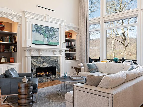 24 Hearthstone is a work of art in gated Poplar Ridge, completely renovated, boasting contemporary design without compromising functionality and livability. Inspirational architectural elements surround you from every corner with a stunning staircase welcoming you into the home, built-ins and coffered ceilings in the great room. The stunning gourmet kitchen is outfitted with sleek cabinetry, three dishwashers and a Sub-Zero refrigerator. Newly added large windows bring the outdoors in, flooding the home with sunlight. The second level offers a primary suite that is a sanctuary, with two seating nooks one with a fireplace and the other with walls of windows overlooking the mountains, and two separate walk-in closets that connect to a designer bath with two water closets. Also found on this level are two bedrooms with a shared bath. The basement level offers a home theater with surround sound, family room with a wetbar, flex room with a bath and access to the fully fenced backyard.