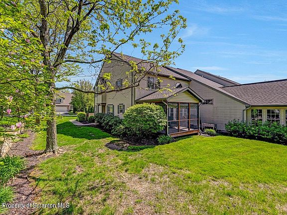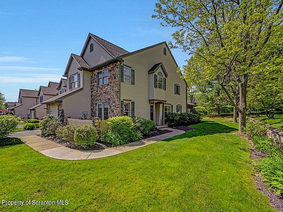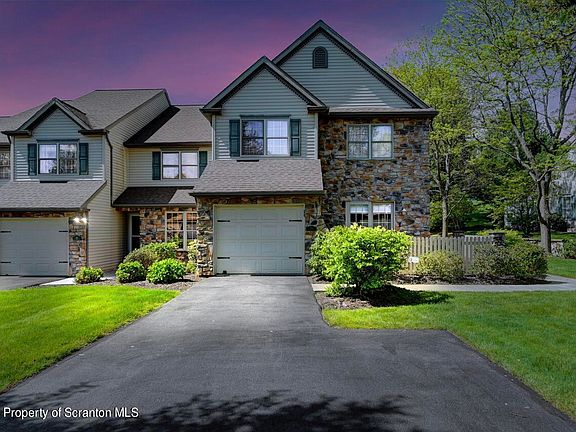 Welcome home to elegant convenience. Beautiful end-unit townhouse on a quiet cul de sac in the sought after Abington Heights School District.Bright and airy, you'll love the open kitchen and family room space. The family room boasts vaulted ceilings and a two story wall of windows overlooking the well landscaped yard. You'll find granite countertops and a practical center island in the kitchen, which leads out to a large screened-in back porch. The dining room is the perfect size for hosting dinner parties and is open to the spacious, but cozy living room. The house flows beautifully with hardwood floors throughout the main floor.The main-floor powder room is conveniently located adjacent to the laundry room, which doubles as a mudroom for entry to and from the one car garage.Upstairs, the sun soaked loft overlooks the family room. Currently it's being used as a home office space, but could be a play area, den, or sitting/reading room. French doors open up to the privacy of the large master suite, where you'll find a huge master bathroom with soaking tub and stand-up shower. The suite also includes two large closets, one which is a very nicely sized walk-in. Down the hall you'll find the second full bathroom and two more bedrooms with great closet space. The entire home feels open and bright.Taking a walk downstairs to the unfinished basement, you'll have more storage than you know what to do with, with tons of built in shelving, and ample space to expand if ever desired.Throw away your snow shovel and rake and come live in the convenient elegance of this beautiful townhouse at Fieldstone Estates. You will not be disappointed. HOA Fees are $300 Per Month.