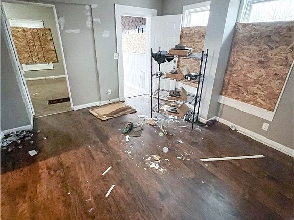 Cute 3 bedroom colonial perfect for owner occupants or investors! An enclosed porch welcomes you into the living room. Off the living room you will find a huge eat in kitchen with white cabinets. A 1st floor bedroom and a full bath make this home ideal for 1 floor living. Upstairs there are 2 additional bedrooms. Outside you will find a fully fenced yard. Vinyl windows throughout and vinyl siding! Property is currently boarded up for security purposes only and all windows are in tact. Don’t miss the chance to make this one yours!