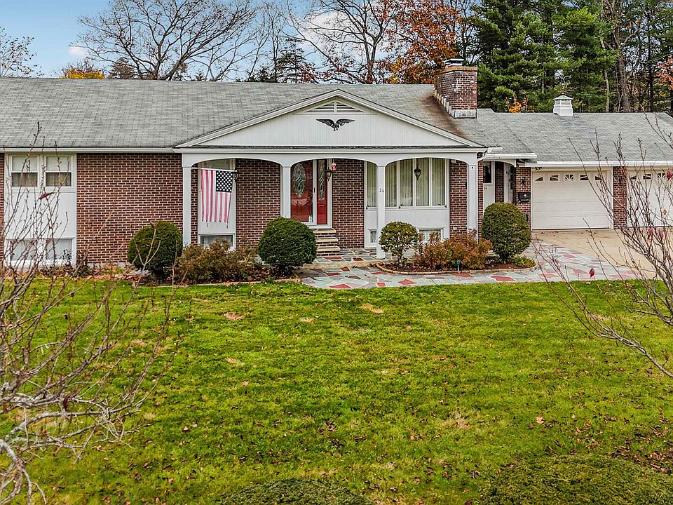 Don't miss this spacious 2-3 Bedroom home located in an established Bedford neighborhood. This single-family ranch home offers the perfect blend of comfort and convenience. With a spacious 2,614 square feet of living space, this property is waiting for a new owner to make it home! The main level features hardwood floors, an eat in kitchen, one level living with 2 bedrooms, a full bath, first floor laundry, a formal dining room, a large living room and den with 2 fireplaces. Downstairs you will find a large recreation area, another potential bedroom and 3/4 bath, a separate office space and lots of unfinished storage with direct access to the attached 2 car garage. Enjoy the great outdoors in the large, level, fenced-in yard with an in-ground pool. Convenience is key with this property, situated in a walkable neighborhood close to shopping and major highways. Enjoy the benefits of public water and one-level living, perfect for those seeking easy accessibility. The large attached garage and public water further enhance the appeal of this remarkable home. Don't miss this opportunity to make it yours today!