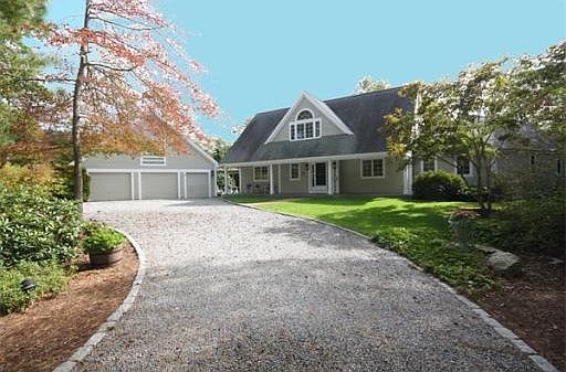 Round Hill...Accessed by a gravel circular drive, this handsome shingle-style home is privately situated amidst beautifully landscaped gardens and lawn. Foyer leads to dramatic great room with soaring beamed ceilings, fireplace...this spacious, open floor plan comfortably accommodates living room, dining area, kitchen with island...and with all rooms opening to sunroom, large screened porch and pergola shaded decks...Library with custom built-ins and first level master bedroom suite...Gracious stairway to lofted second level with two children's/guest bedrooms and luxurious bath. The three bay garage offers guest suite aloft with full bath...This quality built and meticulously maintained home overlooks the second tee and fairway. Enjoy all Round Hill amenities including white sandy beach, club house with pool, tennis courts and Trent Jones designed 9 hole golf course...the perfect family home for summer or year-round living near the sea.