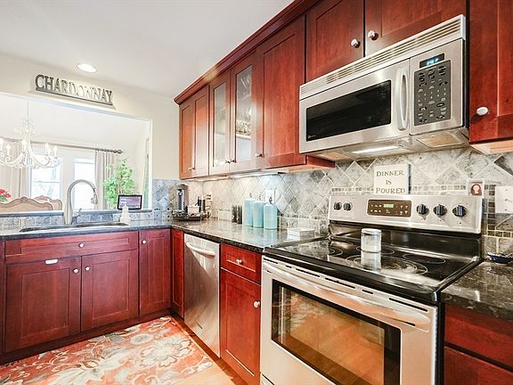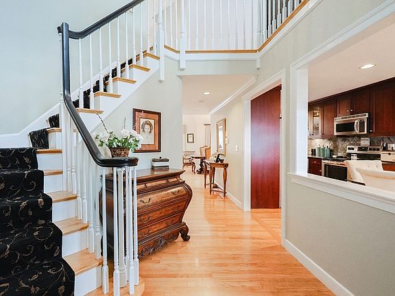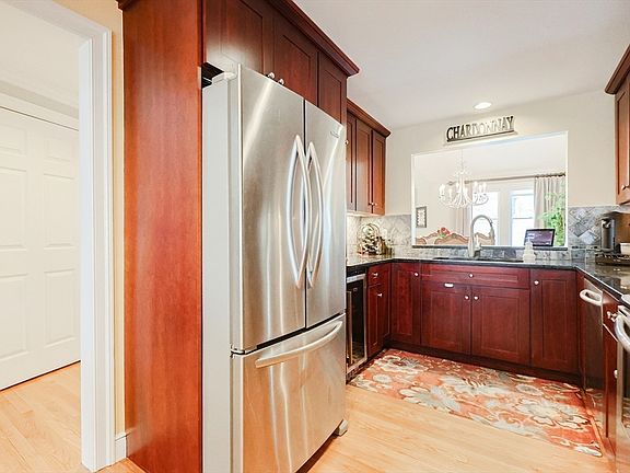 Welcome to The Village at Highland Park! This exceptional townhouse blends seamlessly with the area's natural beauty. A charming courtyard with a brick walkway leads to a covered porch. Inside, you'll find an eat-in kitchen with cherry cabinets, granite countertops, and a tiled backsplash. The dining and family rooms feature hardwood floors, a fireplace, and doors opening to a composite deck with wooded views. Two master bedrooms—one on each floor—offer en-suite baths and ample closets. A loft provides office space, while the finished basement includes a family room, built-ins, a cedar closet, storage, and a walk-out. Additional features: garage with storage, deeded parking, and included appliances. Conveniently located one mile from the commuter rail, with quick access to routes 9, 90, and 495, plus nearby state parks and top-ranked schools.