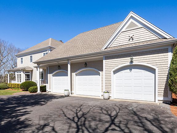 PRICE REDUCTION-Stunning 3,700+ sq ft shingle-style Cape Cod home in the premier gated community of Ballymeade Estates. This thoughtfully designed residence blends timeless New England architecture with upscale modern living. The first-floor primary suite features a cathedral ceiling, French doors to a private patio, and a spacious en-suite bath. The gourmet eat-in kitchen flows into a bright living room with gas fireplace and coffered ceiling, a formal dining area, and a private library/office. A screened porch leads to a large deck, ideal for entertaining or relaxing. Additional features include laundry, half bath, and mudroom entry from the 3-car garage. Upstairs offers three bedrooms (one en-suite), a den, full bath, and front deck. Custom cabinetry, hardwood floors, walk-up attic, and a partially finished basement add to the appeal. The Cape Club offers a championship golf and amenities for the entire family or join the private Sacconnesset Golf Club designed by Rees Jones. Enjoy the professionally landscaped yard and close proximity to Falmouth beaches & the Shining Sea Bike Trail. An exceptional home in a sought-after location, don't miss this opportunity