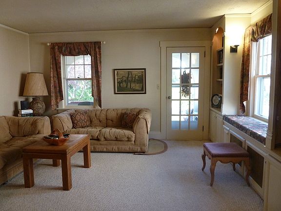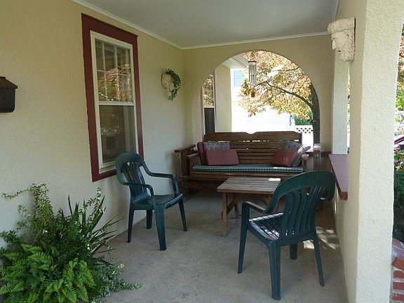 Charming stucco bungalow with first-floor master bedroom & bath; a bedroom/den & hallway bathroom; dining room; living room with builtins; kitchen; 3rd bedroom. Arches grace the front porch.