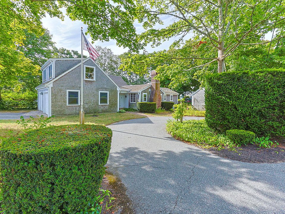 Located in an exclusive North Chatham neighborhood of $3M+ homes, this 5-bedroom, 3-bath residence offers both charm and potential. Set on a picturesque corner lot on a quiet street with mature landscaping and perennial gardens, the home welcomes you with warm, sunlit interiors. The thoughtfully designed layout includes two first-floor ensuite bedrooms--one privately located off the cozy living room, which features a wood-burning fireplace, antique wide-plank floors, and custom built-ins. A 3rd bedroom is also located on the first floor. A spacious dining room flows from the kitchen and sun room/eating area to a two-sided wraparound deck, ideal for indoor-outdoor entertaining. Upstairs, you'll find 2 generously sized bedrooms and a full bath, along with a large unfinished bonus room above the garage. The oversized two-bay garage easily accommodates boats or multiple vehicles. With some updating and personal touches, this home offers exceptional potential in a prime location. Enjoy an easy walk to Cow Yard Beach, the Fish Pier, Chatham Bars Inn, and the shops and restaurants of downtown Chatham. Please verify all information contained herein.