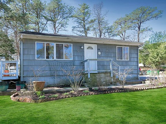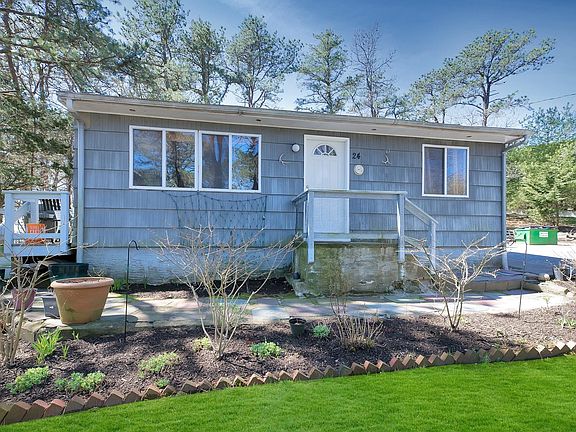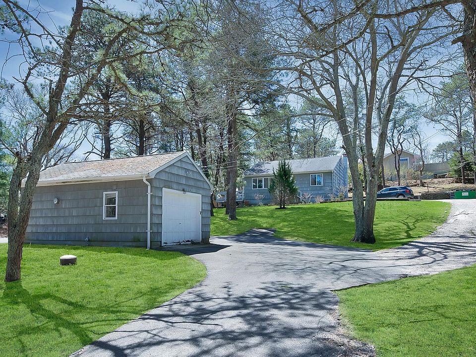 Water view Shinnecock Hills home perched high on hill with open floor plan living room, dining room and kitchen. Three bedrooms, one bathroom, wrap around decking, detached garage and shed. Possible mother/daughter. Centrally located Close to bay and ocean beaches, shopping, restaurants etc. Endless possibilities on this nearly half acre lot.