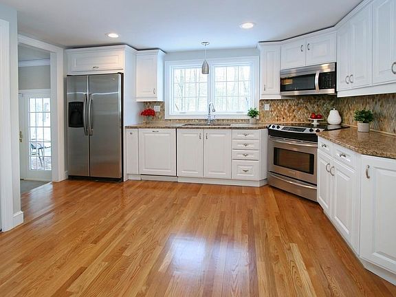 Great Hillview Country Club neighborhood for this Pine Ridge Estates Garrison Colonial. Nicely renovated and ready for occupancy! Granite counters in kitchen. Hardwood floors. Very versatile and open floor plan includes both a first floor familyroom and a fireplaced first floor livingroom. Three updated ceramic tile bathrooms, including one in the Master bedroom. Four renovated bedrooms are all on the second floor. And the laundry connections have also been moved to the second floor. Updated roof, windows, septic system, and much more. Central A/C, a spacious, attached two car garage. Finished playroom in lower level.. Nice enclosed screen porch/ deck off rear overlooks an acre of privacy! Listen to the birds while surrounded by acres of conservation land! .